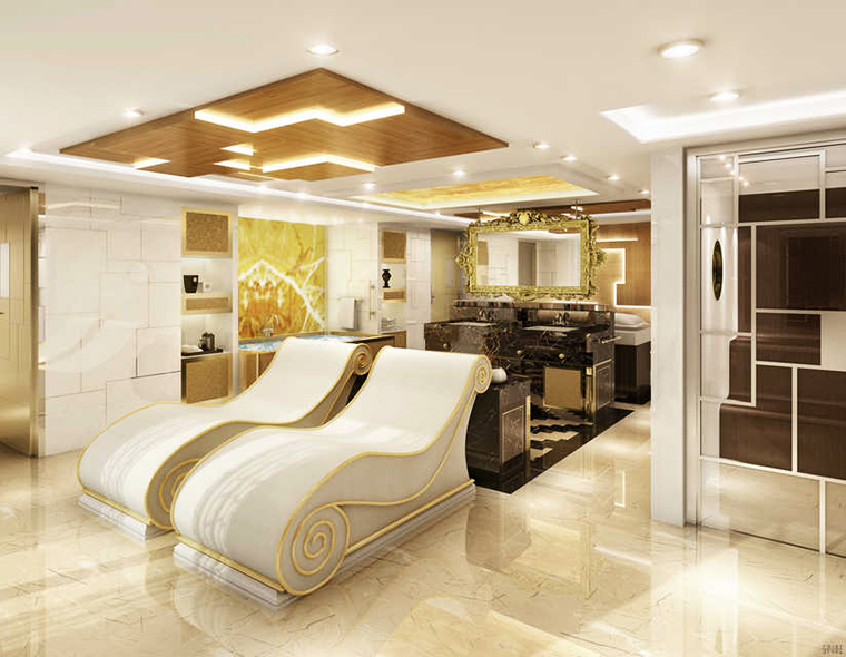 The luxurious suite has been carefully designed to maximize space and comfort. Relax on your private balcony and indulge in your lavish bath amenities as you recharge and ready yourself for new adventures in the next port of call. This suite also includes priority online reservations for shore excursions and dining, and you're encouraged to call on the services of a personal butler for special requests.