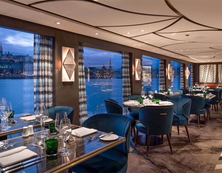Main Dining Room (open seating): Main Dining Room (open seating): This seating option allows you to choose when and with whom you dine. Menus are a blend of classic cuisine with a touch of contemporary elegance, and are created using only the finest and freshest ingredients often brought onboard from local ports of call. You'll be surrounded by the beauty of passing riverbank towns and villages.