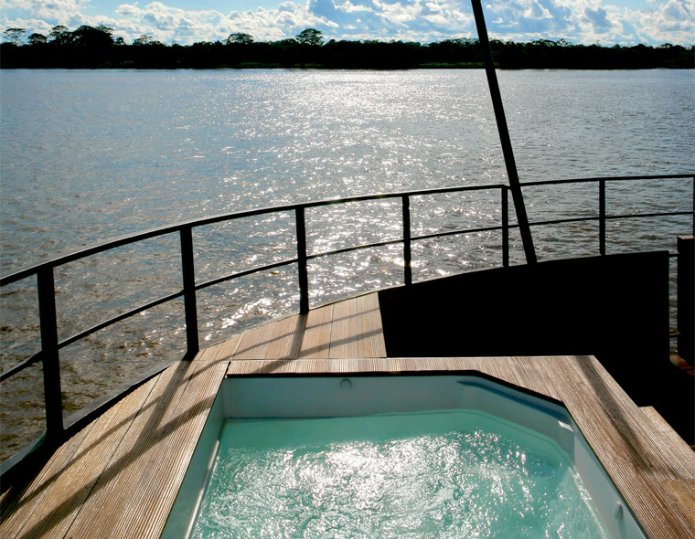 Designed to explore the Peruvian Amazon in luxury and comfort, the Aria Amazon is an all-suite ship with floor-to-ceiling windows, giving you a full view of the majestic rivers and rainforest. The top deck features a jacuzzi, indoor lounge & bar and an outdoor observation deck. With all-inclusive amenities and five-star cuisine by top chef Pedro Miguel Schiaffino, this luxurious ship is guaranteed to give you an intimate and immersive experience.