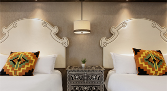 Amara Resort and Spa introduces a new and sophisticated “tree lodge” aesthetic to all guestrooms and public spaces. The experience begins upon arrival as guests enter an inviting lobby that allows travelers to recharge. This design extends through SaltRock Southwest Kitchen, the spa and fitness center, and concludes at the signature zero-edge infinity pool.
