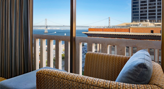 The Bay area and city skyline are on display in rooms and suites featuring sweeping views of the Bay or Embarcadero district. Relax with smart amenities and voice-activated controls, comfortable bedding and floor-to-ceiling windows.