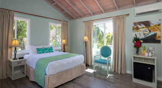 These Caribbean-style accommodations offer views of the ocean or the lush tropical gardens.