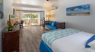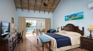 Rooms are located in two-story beachfront buildings. Rooms on the ground floor feature an extra large bathtub with one king and a private terrace or balcony with an ocean view. Rooms located on the second floor feature a frameless shower, one king bed and a private balcony with an ocean view.