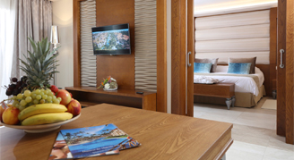 All suites are furnished with high-quality, European materials, and feature an outdoor Jacuzzi for two, a Nespresso machine and a mini-bar that is stocked daily. The resort caters to adults – with five buildings dedicated to the Mirage Club, an adults-only section – and two buildings for families with children.