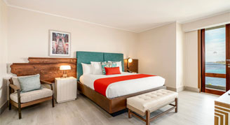 Rooms feature two double beds with furnished, private balconies and a 48” TV. All rooms include a bathtub and offer an island view.