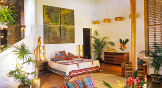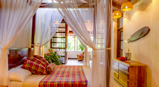 Anse Chastanet emphasizes the use of local woods and other local products in the room décor and furnishings. Cushions and bedspreads are made from colorful cotton fabrics called madras, the island's "national cloth". Even the resort bathrobes are locally made.