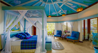 Architect owner Nick Troubetzkoy believes passionately in nature. So he created a hotel that makes the foliage and the flowers, the perfumes and the peaks, the sea and the bird song an integral part of your vacation experience. The estate encompasses 600 lush tropical acres bordering two soft sand beaches. The resort's two crystal-clear bays are part of a designated marine reserve protecting colorful coral reefs teeming with tropical fish. A dozen rooms are tucked in behind the coconut palms that line the beach and the remainder tip toe up a flower-decked hillside, taking advantage of the captivating scenery all around. Guests 16 years and older are welcome when traveling with an adult.