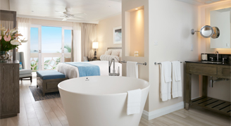 Only steps away from the water’s edge, Luxury Oceanfront Rooms are furnished with a king-sized bed. They are peaceful and guaranteed to be relaxing, with spectacular views of the ocean from the room's balcony.