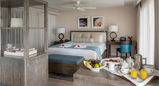 Grand Luxury Oceanfront Suites include a king-sized bed. They are cool and colonial, reflecting their Caribbean setting in true West Indian style. Finished with genuine antiques and locally-crafted reproductions, the suites are equipped with iPod stations and CD players, which are great to set the mood for watching the glorious St. Lucian sunsets from the spacious private balcony.