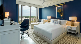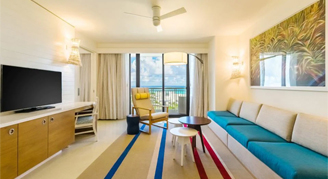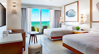 Rooms provide a fully furnished balcony with a view of the ocean, and are located in the East Tower and West Tower. Room color may vary.