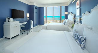 Rooms provide a view of the ocean, and are located in the East Tower and West Tower. Room color may vary.