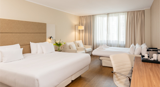 The iconic NH Collection München Bavaria building was one of the first skyscrapers in Munich and offers the highest hotel rooms to be found across the entire city center. The hotels design reflects the city's rich history, with bronze details echoing the statue of Bavaria, the personification of the Bavarian homeland.
