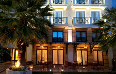 Surrounded by gardens, the hotel offers an oasis in the heart of cosmopolitan Santorini. The hotel is located in Fira and features chic and elegant décor.