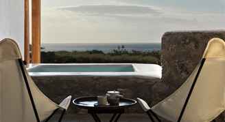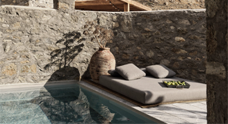 All 14 suites embrace a unique and mesmerising creative spirit that strike the perfect balance of minimalism without sacrificing an ounce of charm, combined with a timeless design of earthy, handpicked natural elements in a comfortable setting. The suites offer inviting indoor and outdoor sitting areas and large private terraces overlooking the Aegean Sea, that will dazzle your senses as you engage in your own peaceful surroundings. All suites include a bathroom with shower, king-sized bed, pool or hot tub, outdoor shower, daybeds or sunbeds, outdoor wet bar with culinary equipment, indoor mini-bar with water selection, Nespresso coffee machine, wireless direct dial phone, Marshal speakers, record player and vintage records selection upon request, books, yoga mattresses, flip flops and beach towels, and Pandrosia bio luxury amenities.
