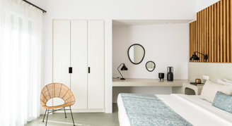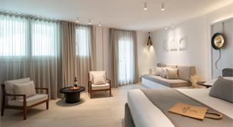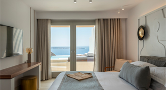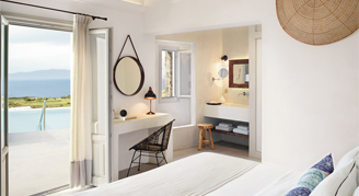 The hotel's 85 spacious white-washed, Cycladic suites and villas are perfect for those who seek tranquil vacations, laid-back luxury accommodation, and warm hospitality. This hotel welcomes guests 12 years and older.