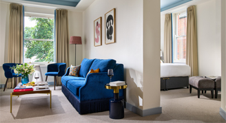 Featuring a deep, custom-made bed dressed in goose down and Irish-designed fabrics, a spacious en-suite bathroom with premium finishes and an elegant seating area, each suite captures the essence of gracious city living.