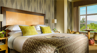 Rooms are decorated in soft colors and have a Kerry mountain view. Rooms have a seating area with natural light and a chaise lounge.