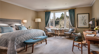 Perfectly plush, the deep armchairs in Deluxe Rooms make a dream perch for marveling at the River Sheen right outside. Slide open the window, sit back with a coffee and enjoy the rhythmic tempo of the rushing river below. Styled in soothing natural colors inspired by the Kerry countryside, each Deluxe Room features a gorgeous blend of luxurious Irish furniture, fabrics and furnishings. Fashioned by local craftsmen and generous in size, Deluxe Rooms are perfect for a rest, romance or resetting your work-life balance.