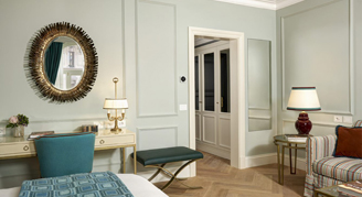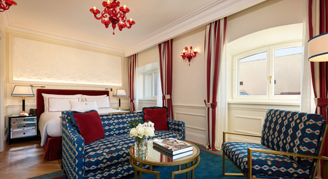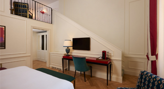 Entering the Junior Suite is like entering a magical world of color, pure design and elegance. The Junior Suite features a large bedroom and a small open-plan living room with a characteristic view over the alleys of Rome.