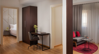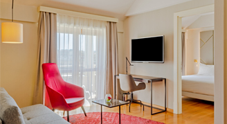 Junior Suites are larger than Premium XL Rooms and feature a view of the city and a separate sitting area. A rollaway bed or sofa bed is included for the third guest.