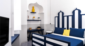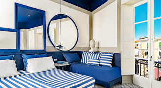 Classic Rooms are characterized by an elegant and refined style, with blue-colored furnishings that evoke the tones of the sea and the sky.