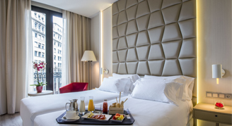 The hotel lies in the heart of Barcelona, near the Plaza de Cataluña, the city’s main shopping and cultural district. The Arc de Triomf and Parc de la Ciudadela, with its zoo and boating lake, is a few minutes’ walk away. The hotel also features a rooftop swimming pool during the summer next to their terrace and cocktail bar.