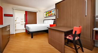 Rooms feature views of the courtyard, pool or parking area, and are located close to Melody Hall dining, shopping and transportation. Amenities include a queen-size table bed.