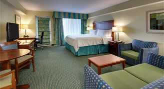 These spacious accommodations feature a sitting area with a pull-out sofa bed.