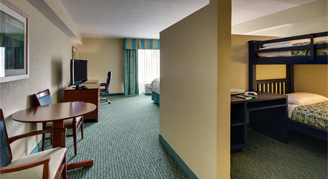 Rooms and suites provide the comforts of home with convenient amenities including plush bedding, an in-room coffee maker and a flat-screen TV. Some rooms feature pool views and spacious suites with bunk beds.