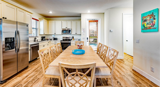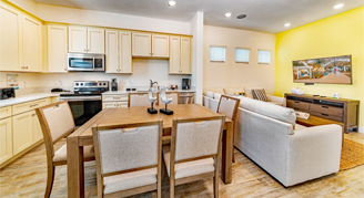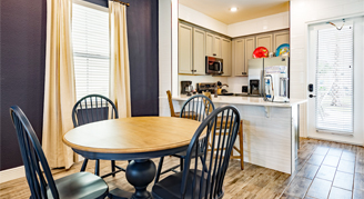 Cottages are two or three stories and feature full kitchens, en suite bathrooms, dining and seating areas, a sofa bed, washer/dryer, Margaritaville Frozen Concoction Maker, daily housekeeping, access to the entire Margaritaville Resort Orlando, and more. Furnishings may vary.