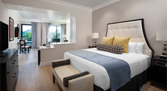 All rooms and suites are spacious, elegantly appointed and complemented with European art, an in-room safe, coffee maker, hairdryer, iron and board, and plush terry robes.