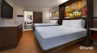Imagine yourself sharing the spotlight with some of your favorite Disney friends, as you headline your very own all-star adventure. Stay at a Disney Resort hotel that salutes the legends of Disney films – from the dotted pups of 101 Dalmatians to the playful toys of Andy's Room – with whimsical, larger-than-life décor.