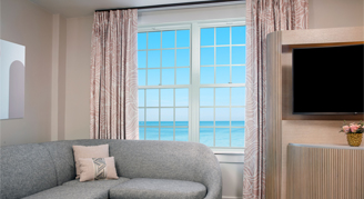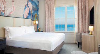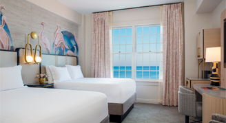 Unwind in coastal-inspired rooms. Each guestroom features beach-inspired textures and designer fabrics paying homage to the seaside Art Deco era. Guest rooms offer everything needed for a productive and relaxing beachfront stay. Smartly designed workspaces and premium Wi-Fi ensure seamless productivity. Spacious suites with stunning views in a superb beachfront location are available.