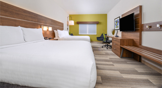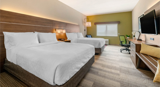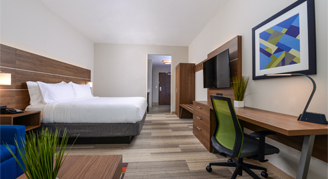 An array of complimentary amenities including a hot breakfast buffet, 24-hour fitness center, and business center, and reliable high-speed wireless Internet throughout the hotel is available to all guests. All rooms are appointed with refrigerators, microwaves and 50-inch flat-screen HD TVs with DirecTV.