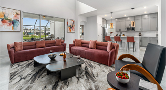 Four-bedroom, three-bathroom villa with a private pool, living room, and full kitchen.