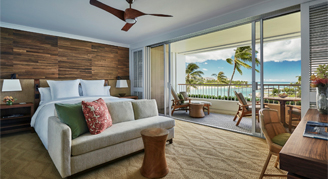 Rooms are located on floors 4 and 5, and feature a view of the ocean and the surrounding coconut trees from the lanai.