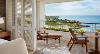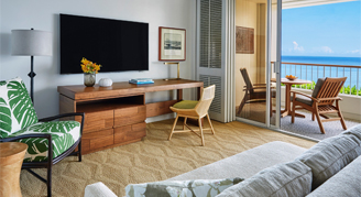 Suites are located on floors 12 - 17 and feature a view of the ocean and surrounding coconut trees from the lanai. Additional amenities include a separate living room and a second bathroom.