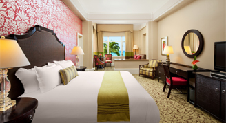 Each of the 528 rooms and suites are unique unto themselves, blending modern comfort and old-world charm. In the Mailani Tower, each room offers an intimate lanai for a private vantage point on the ocean. In the Historic Building, elegant furnishings include custom dark wood, crisp white bedding and boudoir pillows.