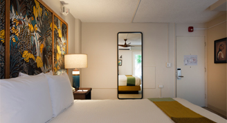 Feel intoxicated by the magic of Hawaii. Located in the heart of Waikiki, and just a short walk to Waikiki Beach, the hotel is ideally located near the International Marketplace, restaurants, shopping and nightlife. Built in 1957, and reimagined for today, this lush, tropical oasis invites you to drop in, tune out and embrace the Waikiki of yesteryear. The hotel's 94 rooms and suites, exterior walk-up corridors, and private lanais make it a vintage gem suited for contemporary island life. Embrace this classic Waikiki walk-up hotel, where the tropical charm of old Hawaii lives on. Limited on-site and off-site parking is available.
