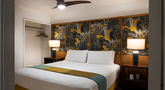 Appreciate understated elegance joined with vibrant Hawaiian design and local artistic touches. Each well-appointed room features a mini-fridge and microwave, plus a 40-inch LCD TV and high-speed Wi-Fi.