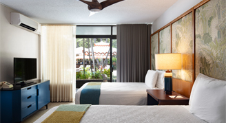 Rooms feature a resort view from the bamboo lanai.