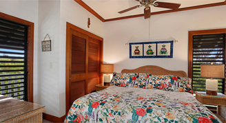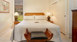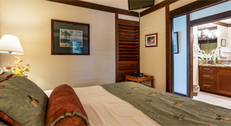 These one-bedroom vacation condos feature serene garden and ocean views. Additional amenities include HD cable TV, complimentary Wi-Fi, a private lanai, living room and a full kitchen. Each condo suite is individually designed for a unique, authentic experience. Please note these units do not have air conditioning.