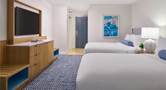 Newly renovated rooms feature island views, modern furnishings, ocean-inspired palette and local artwork.