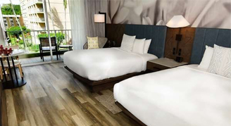 Guest rooms feature deluxe bedding including down comforters, fluffy pillows and designer duvets, as well as two his-and-her robes and slippers, steamer, and in-room Kauai coffee service.