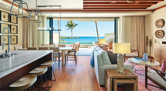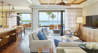 Each of the two- to four-bedroom luxury residences offer at least three private lanais and ocean views. There is no shortage of luxury amenities, authentic Hawaiian activities or boundless island adventures. Enjoy the Jack Nicklaus Ocean Course, two-tiered infinity pool, spa, fitness, tennis and pickleball courts, accessible trails, beach access, oceanfront dining, Keiki Club for children, concierge services and more.