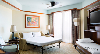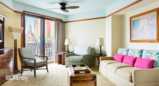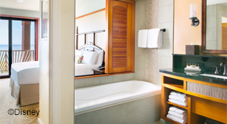 • Enjoy the comfort and convenience of home in a spacious villa designed to easily accommodate families or friends traveling together. Features include a kitchen, a living room, private bedrooms, and a washer and dryer, all with the AULANI Resort activities just outside your door. A little more than you need? Deluxe Studios feature a kitchenette, which is a great option for fewer people and shorter stays. All studios and villas are designed with custom details that reflect Hawaii's culture and environment, with magical Disney touches that delight kids and adults alike. Housekeeping will be provided every other day and includes bed making, vacuuming, dusting, cleaning of bathroom(s), kitchen/kitchenette, and washing the dishes, removal of trash and towels, as well as replenishment of towels and amenities. Bed sheets are changed every four nights, or upon request.