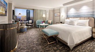 Find timeless tastes wrapped in a masterpiece of luxury and elegance. Indulge in a serene retreat that boasts neutral earth tones, and natural light inspired by the natural beauty of Lake Como in Italy. With sophisticated décor, a plush king bed, and a luxurious marble bathroom, the Bellagio Suite provides the perfect comforts for an unforgettable stay.