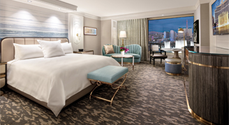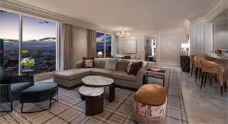 Savor style with the impressive expansion of the newly remodeled Two-Bedroom Penthouse Suite. Offering breathtaking views of the Las Vegas Skyline at every turn, indulge in the sophisticated opulence that makes this room grand. Tailor your stay to your preferences with mood lighting, individual climate control, automatic drapes and more. Luxury awaits.
