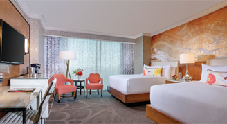 Resort Rooms express leisure with enhanced furnishings and a uniquely bold Mandalay Bay style. Comfortably furnished with seating for three, this room offers a balance of comfort and style.