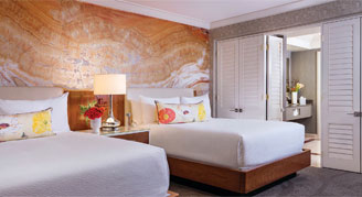 The 550 sq. ft. Restore Resort Two Queen room is leisure expressed with enhanced furnishings and a uniquely bold Mandalay Bay style. Relax in comfort with Restore by MGM amenities improving your room's air quality, water quality and sleeping environment. Restore your balance. Elevate your stay.